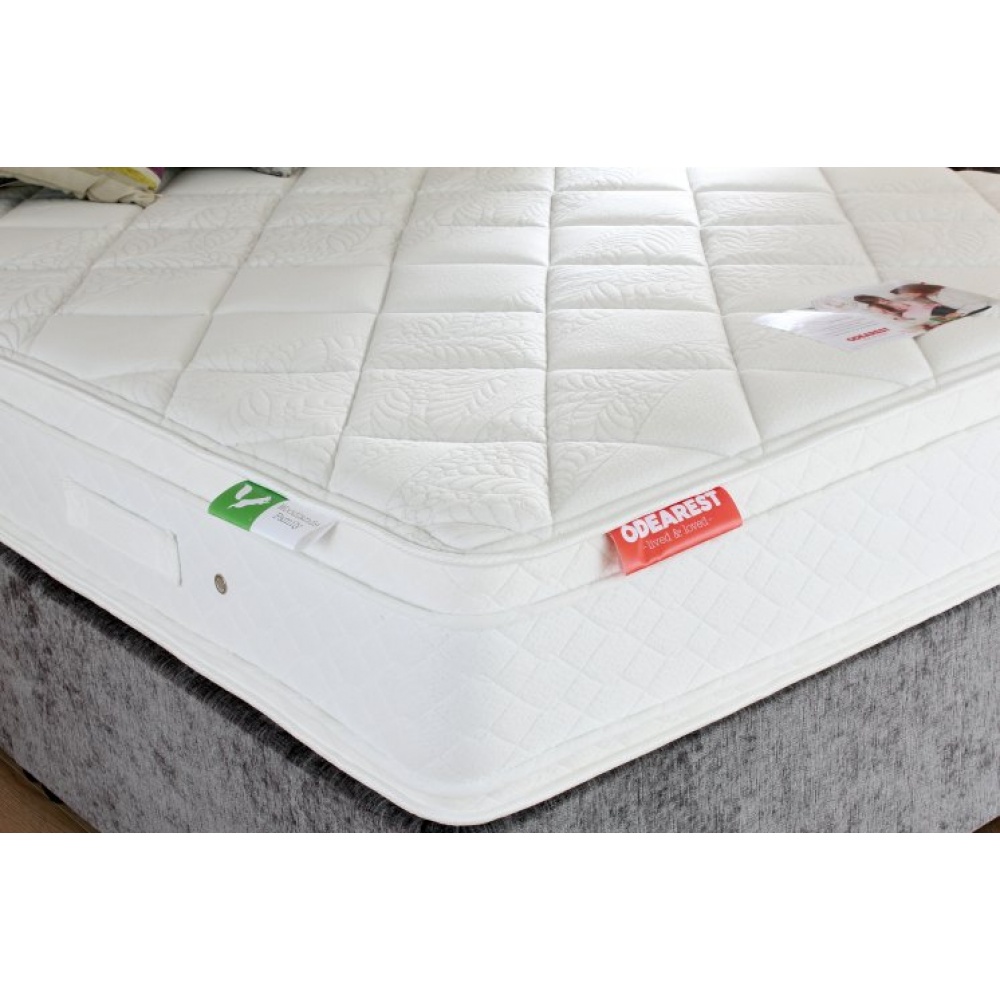 Strong and supportive Odearest 13g open coil springing & firm feeling orthopaedic design. High density filling layers for years of firm support. Turnable mattress. Turn over and rotate regularly. Available in 3', 4', 4'6", 5, 6'. 6 year warranty.