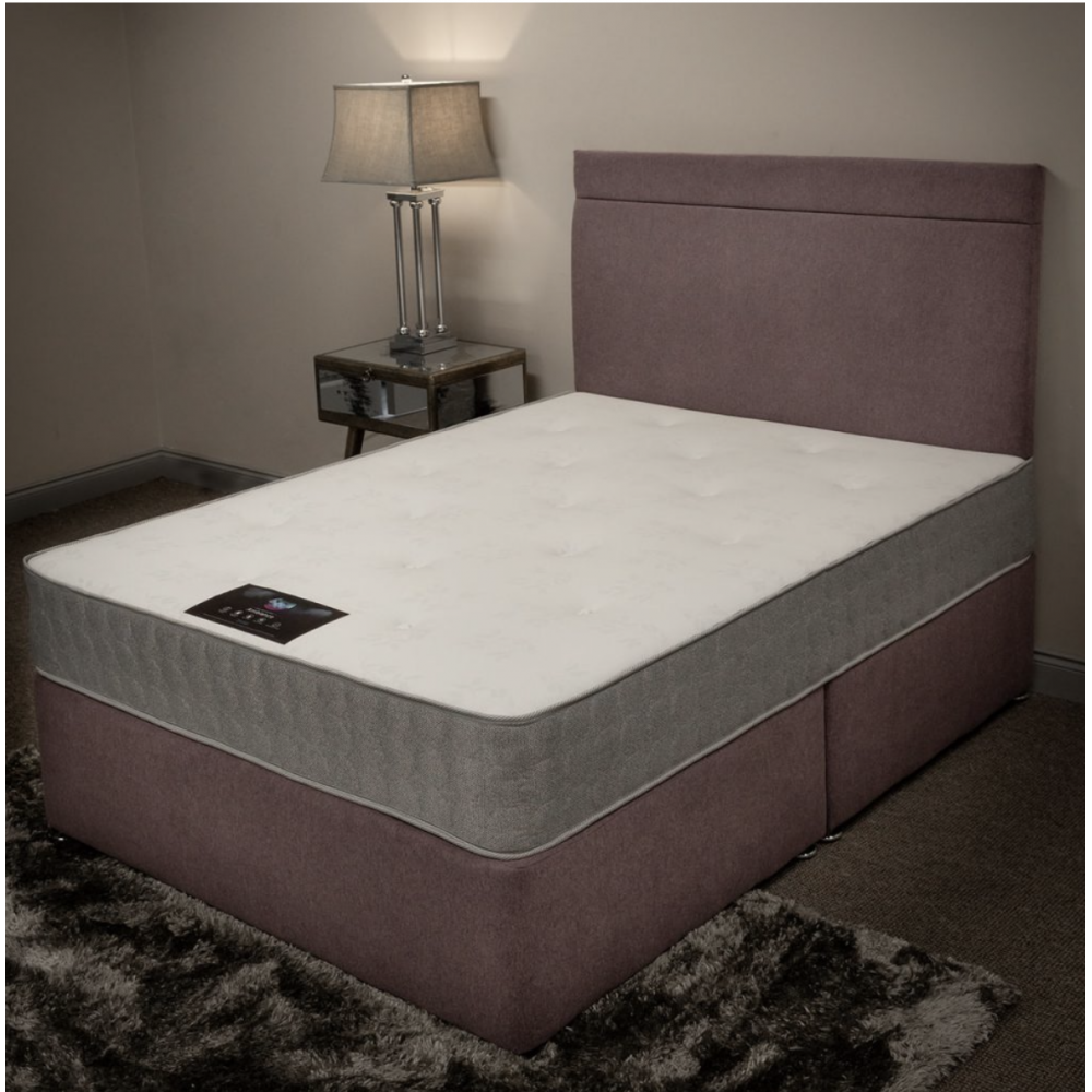 Double-sided bonnell spring mattress. A check grey border fabric is matched with a floral grey panel fabric to give an overall attractive appearance. 3' - € 155 4' - € 200 4'6'' - € 200